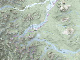 By re-processing exsting, public-domain data, I produced a series of "VNC-like" 1:250K topos for the civilian air search-and-rescue group in Smithers, BC, (CASARA) to use as navigation maps. These combine the NTS 1:250K topographic base with the shaded relief and hypsometric tinting found on the 1:500K Visual Navigation Charts used by pilots. |