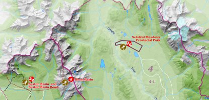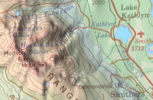 When I first moved to Smithers I was working for the National Outdoor Leadership School, and we were able to buy excellent large-format wall maps of British Columbia. If I remember correctly, six sheets covered the province (each sheet was about three by four feet), and you could mosaic these together on the wall. They were excellent for planning ... |
